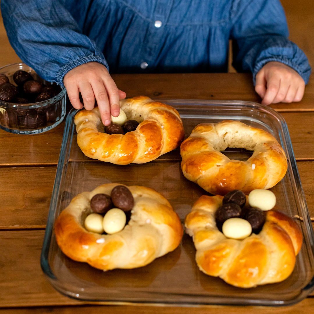 Attendez que les brioches soient froides avant d'ajouter des œufs en chocolat au centre.