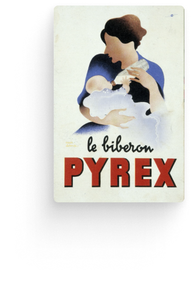 Si la marque Pyrex® naît aux États-Unis, c’est dans les ateliers français que l’histoire de la marque continue de s’écrire. En 1922, les souffleurs de verre Clovis et Léon Régent, pionniers de la marque en France, réalisent leurs premiers ballons en borosilicate dans les verreries de Bagneaux-sur-Loing.