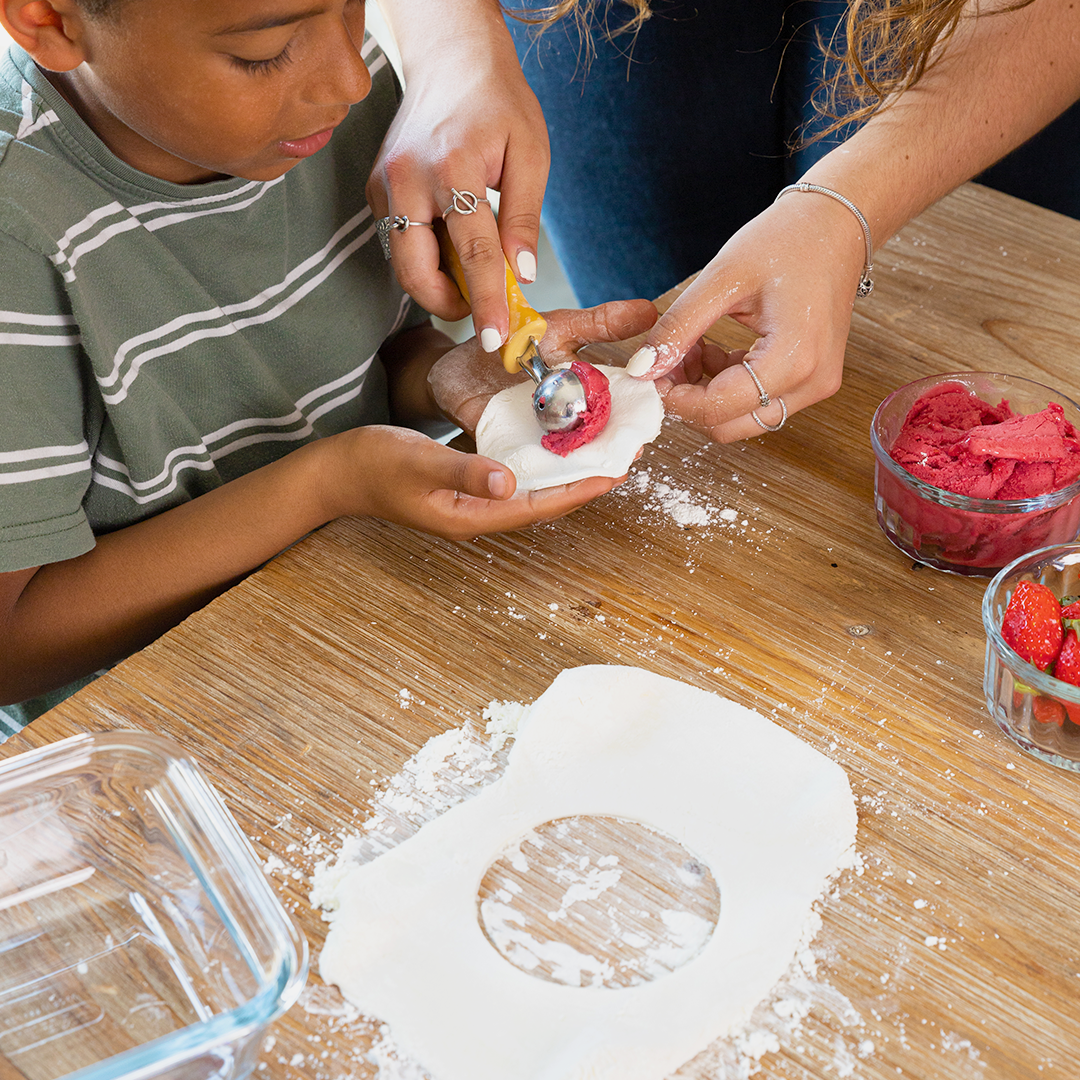 Abaissez la pâte en cercles. Ajoutez plus de maïzena si la pâte est trop collante.